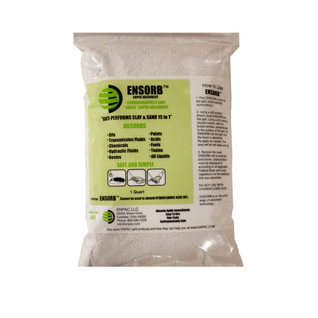 ENSORB is a highly efficient granular absorbent that is lightweight, environmentally friendly, and landfill safe. These properties result in lower shipping and disposal costs, and save you time when trying to clean up a spill. This case of 12 quart sized bags are convenient for small, repetitive leaks and drips that don’t require full cleanup response. Â