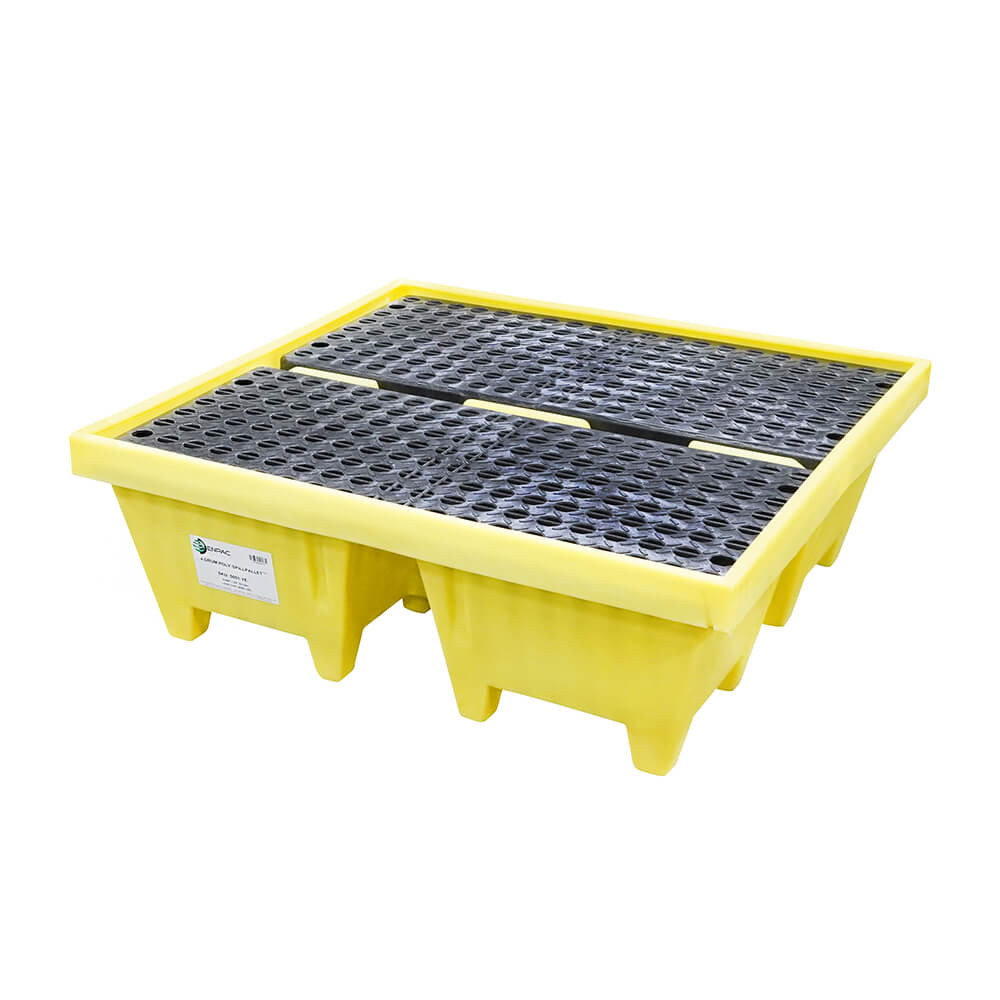 5001-YE-D 4 Drum Poly Spill Pallet XL With Drain, Yellow